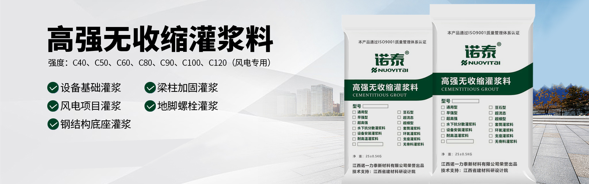 江西諾一力泰新材料有限公司位于江西宜春奉新縣,是專業從事灌漿料水泥路面修補砂漿抗裂砂漿防水砂漿保溫砂漿隔聲砂漿粘結砂漿等砂漿系列產品生產銷售的廠家。